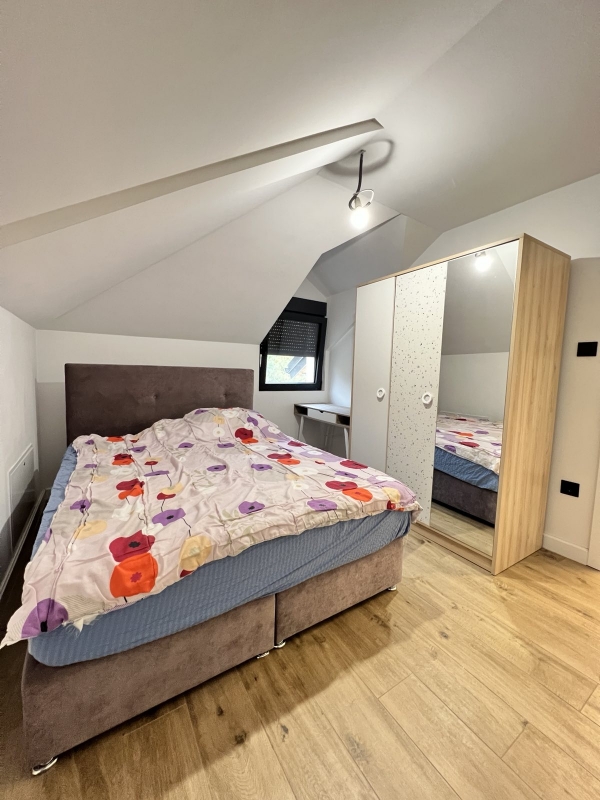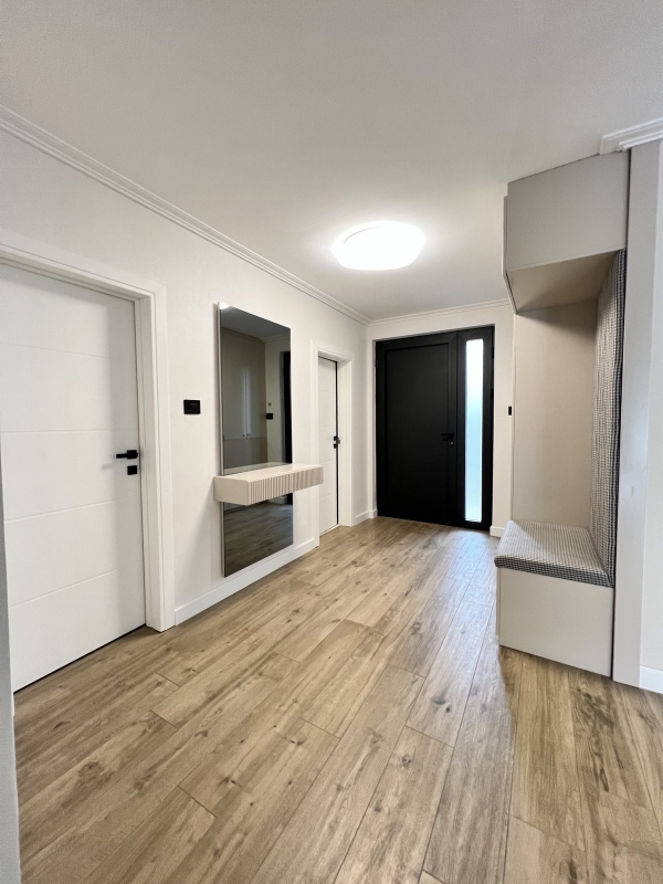 Prodaje se nova, 4s kuća, na Malom Radanovcu, površine 180m2, na placu površine 392m2. Kuća se sastoji iz dve etaže, u prizemnom delu nalazi se veliki dnevni boravak sa trpezarijom, odvojena kuhinja, kupatilo i ostava, na spratu-potkovlje nalaze se tri sobe, garderober, i veliko kupatilo. Podne obloge prvoklasna keramika, izuzetnog kvaliteta - imitacije drveta, gasno podno grejanje, aluminijumska stolarija i roletne(električne). Kuća je veoma lepog rasporeda, sa puno dnevne svetlosti, prodaje se polunameštena. U dvorištu se nalazi velika nadkrivena terasa, dupla garaža, garažna vrata i kapija od kuće povezana su na smart sistem. Kuća je locirana na atraktivnoj lokaciji, u blizini škole, vrtića, marketa, pijace, i svih potrebnih sadržaja.