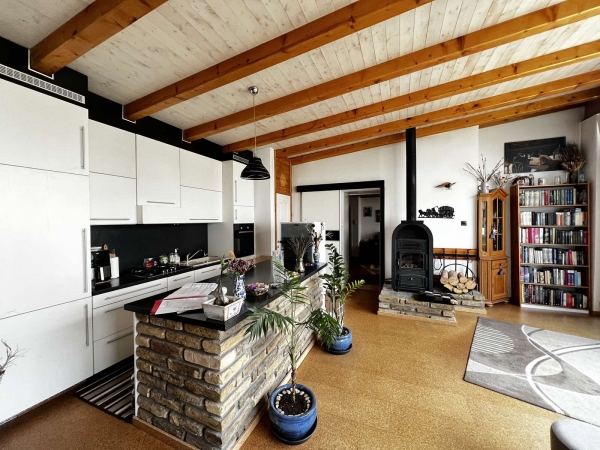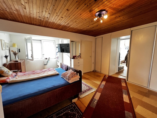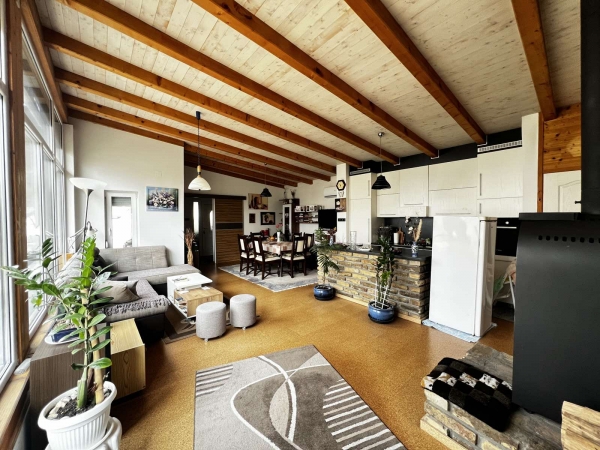 Prodaje se komforna 2s kuća na Bajnatu, površine 89m2, na placu površine 1084m2. Kuća se sastoji iz prostrane spavaće sobe sa kupatilom, velikog dnevnog boravka sa kuhinjom i trpezarijom, hodnika i toaleta. U dvorištu se nalaze i pomoćne prostorije površine 47m2. Podne obloge pluta(izuzetno prijatno i toplo) i keramika, pvc stolarija, gvk, grejanje na kamin, postoji mogućnost priključenja na gas. Kuća je građen od cigle, odlično izolovana, prodaje se kompletno nameštena. Potpuno sređena, bez ulaganja. Pogodno kao stambeni prostor, mogućnost i za komercijalne svrhe.