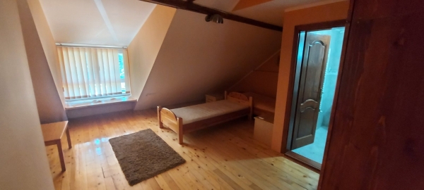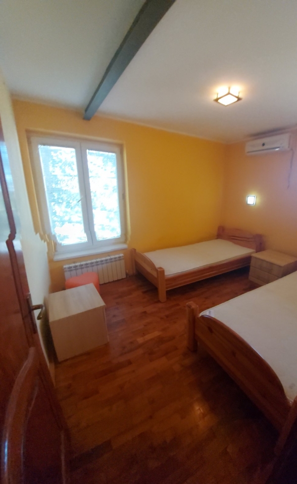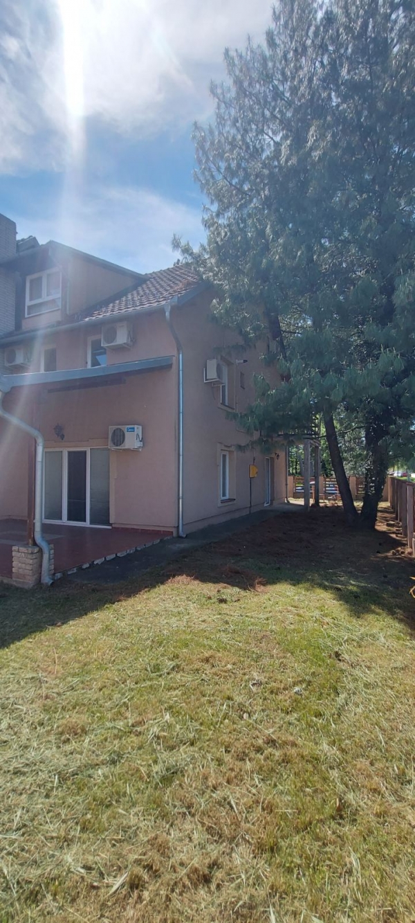 Prodaje se dvojna, spratna kuća, na Paliću, površine 247m2, na placu površine 349m2. Kuća je u nivoima, prizemlje se sastoji iz predsoblja, kuhinje, dnevnog boravka i sanitarnog čvora, na spratu se nalaze tri sobe i svaka soba ima svoje kupatilo, potkrovni deo kuće sastoji se iz dve sobe koje takodje imaju svoje kupatilo. Kuća je gradjena od čvrstog materijala, pvc stolarija, svi priključci gradski, gasno grejanje. Pogodno za turističku delatnost.